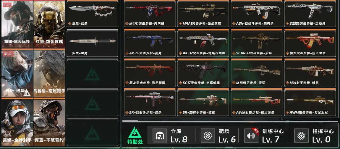 【编号】1A1N0 【个人信息】战场等级无军衔,行动等级黄金 【哈夫币】1174.4w 【总资产】105.5M 【货币】109三角券/25三角币 【安全箱】S8高级安全箱6(2x3) 【特勤处】仓库Lv.8/训练中心Lv.7/靶场Lv.6 【角色皮肤】露娜-黑天际线/红狼-蚀金玫瑰/蜂医-送葬人无题密令/乌鲁鲁-荒原猎手/露娜-金牌射手/深蓝-不破誓约/无名-夜鹰/红狼-电锯惊魂 【已有捆绑包】捞点薯条捆绑包/鹅鸭杀捆绑包/缄花捆绑包 【近战皮肤】近战-信条/近战-黑鹰 【步枪皮肤】M4A1突击步枪-阿米娅/M4A1突击步枪-蚀金玫瑰/ASh-12战斗步枪-鹅鸭杀/SG552突击步枪-运动员/AK-12突击步枪-夜鹰/AK-12突击步枪-特斯拉线圈/SCAR-H战斗步枪-启航/腾龙突击步枪-捞点薯条/腾龙突击步枪-马年祥瑞/KC17突击步枪-电锯惊魂/PTR-32突击步枪-碎冰行动/AKM突击步枪-林中猎手/QBZ95-1突击步枪-曙光/ASh-12战斗步枪-守夜人/ASh-12战斗步枪-无极限/K416突击步枪-冬日风情/K416突击步枪-腊梅/M16A4突击步枪-竞赛选手/AUG突击步枪-蝮蛇/M7战斗步枪-禁卫/M7战斗步枪-百步穿杨/SG552突击步枪-尖端治疗/SG552突击步枪-深海恐惧/SG552突击步枪-哈夫克警备/SCAR-H战斗步枪-囚徒/G3战斗步枪-战场英杰/G3战斗步枪-哈夫克警备/G3战斗步枪-流沙送葬/PTR-32突击步枪-英雄/AS Val突击步枪-尖端治疗/AS Val突击步枪-典狱官/AS Val突击步枪-百步穿杨/腾龙突击步枪-无垢/K437突击步枪-守护者/K437突击步枪-丛影谍踪 【冲锋枪皮肤】P90冲锋枪-信条/UZI冲锋枪-特斯拉线圈/SMG-45冲锋枪-骑士/SR-3M紧凑突击步枪-特斯拉线圈/勇士冲锋枪-能天使午夜邮差/QCQ171冲锋枪-鹅鸭杀/MP5冲锋枪-深海恐惧/MP5冲锋枪-战术竞备/MP5冲锋枪-竞技风/P90冲锋枪-紧急戒备/Vector冲锋枪-阿萨拉文明/Vector冲锋枪-猎鳄行动/Vector冲锋枪-百步穿杨/SMG-45冲锋枪-阿萨拉特攻/SR-3M紧凑突击步枪-荒野求生/SR-3M紧凑突击步枪-战术竞备/SR-3M紧凑突击步枪-开工大吉/勇士冲锋枪-深海恐惧/勇士冲锋枪-工业狂潮/勇士冲锋枪-丛影谍踪/MP7冲锋枪-无垢/MP7冲锋枪-守护者/MP7冲锋枪-六套之力 【霰弹枪皮肤】725双管霰弹枪-送葬人-无题密令/M1014霰弹枪-林中猎手/S12K霰弹枪-曙光 【轻机枪皮肤】PKM通用机枪-荼蘼/M250通用机枪-骑士精神/QJB201轻机枪-鹅鸭杀/PKM通用机枪-蝮蛇/PKM通用机枪-守夜人/PKM通用机枪-荒野求生/PKM通用机枪-阿萨拉特攻/M249轻机枪-丛影谍踪/M250通用机枪-囚徒/QJB201轻机枪-Old Habits 【精准射击步枪皮肤】M14射手步枪-蛮荒/M14射手步枪-缄花/SR-25射手步枪-信条/SR-25射手步枪-缄花/Mini-14射手步枪-守护者/VSS射手步枪-丛影谍踪/SVD狙击步枪-阿萨拉工艺/SVD狙击步枪-暗夜猎手/SVD狙击步枪-荒野求生/M14射手步枪-工业狂潮/M14射手步枪-航天庆典/SR-25射手步枪-尖端治疗/PSG-1射手步枪-无垢 【狙击步枪皮肤】AWM狙击步枪-捞点薯条/AWM狙击步枪-万金泪冠/SV-98狙击步枪-林中猎手/SV-98狙击步枪-囚徒/SV-98狙击步枪-猎鳄行动/M700狙击步枪-竞技风/M700狙击步枪-蝮蛇/M700狙击步枪-守夜人/M700狙击步枪-哈夫克警备/M700狙击步枪-百步穿杨/AWM狙击步枪-无极限/AWM狙击步枪-流沙送葬 【手枪皮肤】.357左轮-缄花/G18-马年祥瑞/93R-捞点薯条/沙漠之鹰-曙光 【特殊武器信息】复合弓-黑天际线/复合弓-守护者 【挂饰】挂饰-蚀金玫瑰/挂饰-黑/挂饰-维什戴尔/挂饰-信条/挂饰-凌霄戍卫/挂饰-火箭玫瑰/挂饰-麦小鼠/挂饰-窃风密探/挂饰-赤霄游龙/挂饰-彩蛋/挂饰-小羊/挂饰-特斯拉线圈/挂饰-阿米娅/挂饰-来点薯条/挂饰-晶石回响/挂饰-大白鹅/挂饰-关山难越/挂饰-启程/挂饰-雪人/挂饰-汤圆/挂饰-北非蛋/挂饰-饺子/挂饰-卡皮巴拉/挂饰-马到成功/挂饰-缄花/挂饰-崩岩重炮/挂饰-福禄/挂饰-福禄/挂饰-福禄/挂饰-福禄/挂饰-聚宝盆/挂饰-聚宝盆 【载具皮肤】轮式突击炮-荣耀/防空车-猎虎/步战车-几何碎片/M1A4坦克-哈夫克重工/轮式突击炮-巅峰竞赛/M1A4坦克-巅峰竞赛/侦察直升机-酒红/突击直升机-原始伪装/全地形车-森林迷彩/突击车-沙漠迷彩/防空车-赤色军团/M1A4坦克-护林人/轮式突击炮-护林人/M1A4坦克-烟火2026/GTQ35坦克-烟火2026/突击车-寒梅/轮式突击炮-烟火2026/F-45A战斗机-夜间迷彩/侦察直升机-烟火2026/F-45A战斗机-建造 (安全箱、典藏皮肤颜色请以游戏内数据为准)