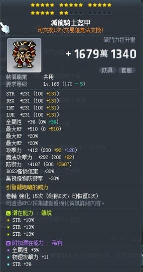 【滅龍騎士盔甲】22C 36%STR 次頂STR 白4 V捲