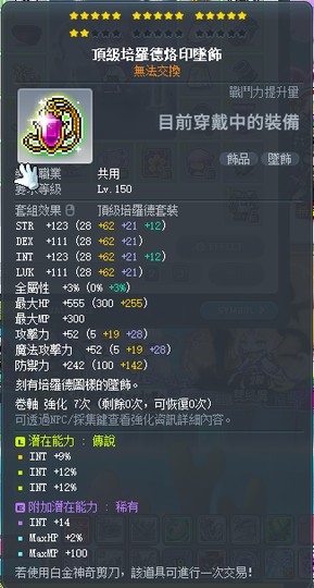 【頂級培羅德烙印墜飾】17星 33% INT 波林的瓦特