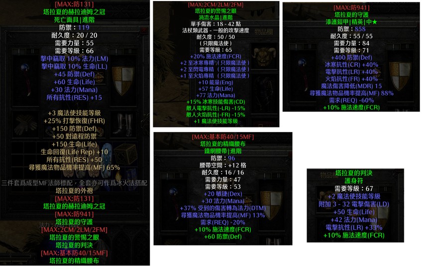 純冰法中高階畢業套裝/塔拉夏套裝35精神盾/眼球軍帽替換/破冰版法火毀符冰技能版