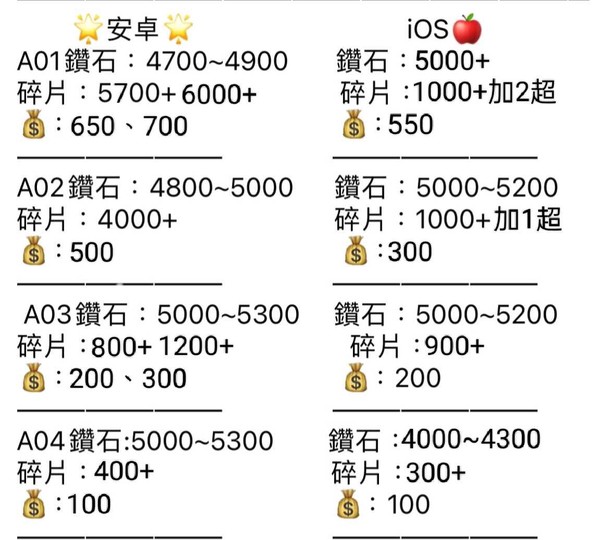 物品種類: 帳號