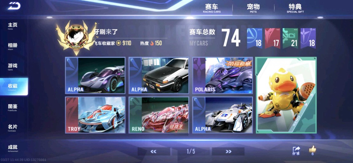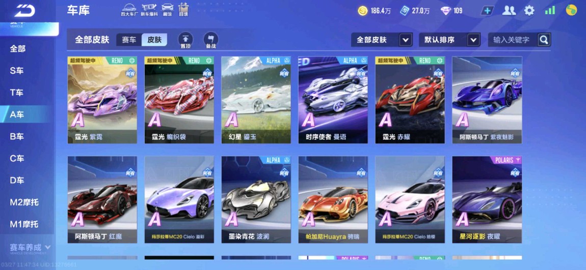 【87等】VIP4 總共有59台A車 19個皮膚 最高段1034分 附贈王者榮耀帳號