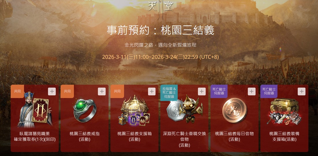 天堂2M 桃園三結義-死亡騎士伺服器事前預約 事前序號 事前禮包