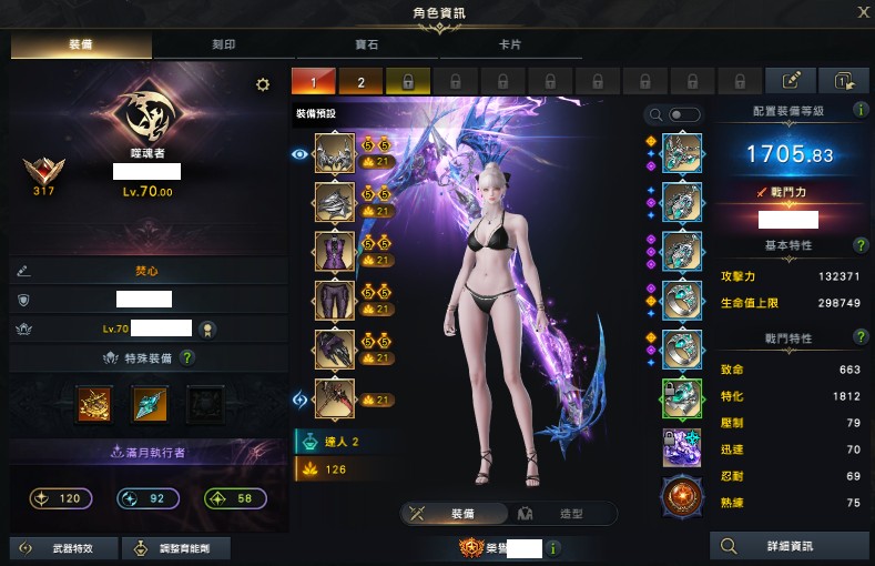 1702.5 野性幻獸 武器+21 品98 三攻手鐲 10/6石 一套傳說時裝