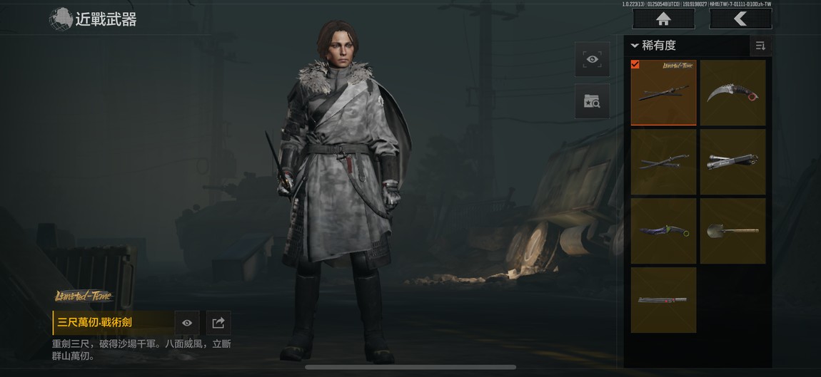 風雪刀、下旋月、彎刀、雙節棍、秀春、開山、工兵鏟