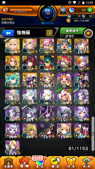 怪物彈珠 帳號共4組 分為: