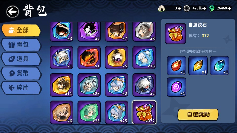 【初始號】影忍一星:26400勾玉、95鑰匙、76結神符