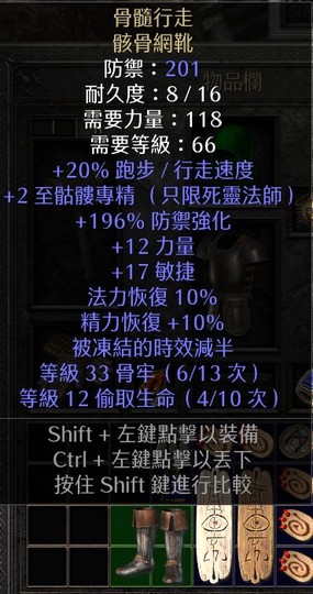 非天梯(死靈)骨髓行走 骸骨網靴 201防禦 196% ED 好鞋好鞋