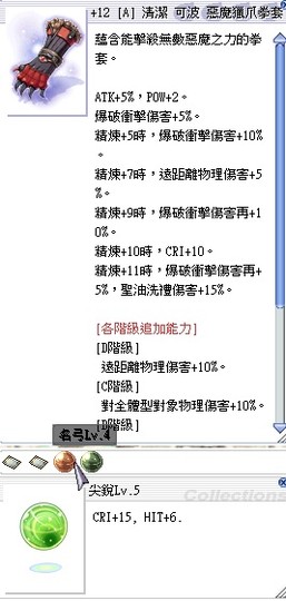 善惡套(聖裁者)+12[A]惡魔獵爪拳套(名弓4尖銳5)+12善惡冠冕(頂附魔)
