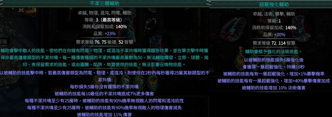 卓越高階輔助寶石👍不潔三體(物理、混沌、閃電)超載強化(暴擊率、暴擊傷害)