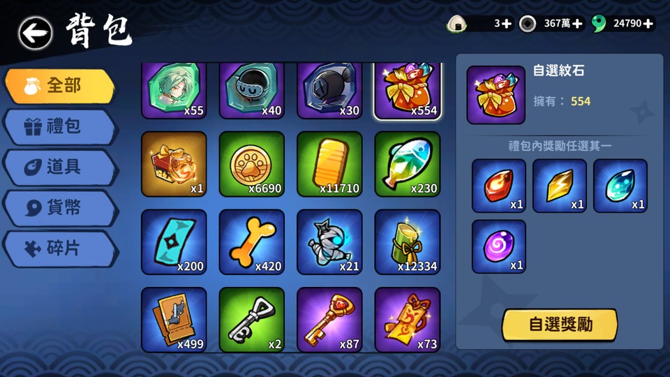 【初始號】影忍一星:24700勾玉、87鑰匙、73結神符