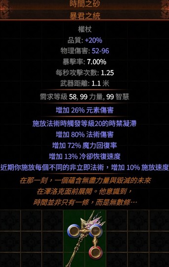 PoE→時間之砂.暴君之統 (法術觸發等級20時禁凝滯、冷卻恢復速度)