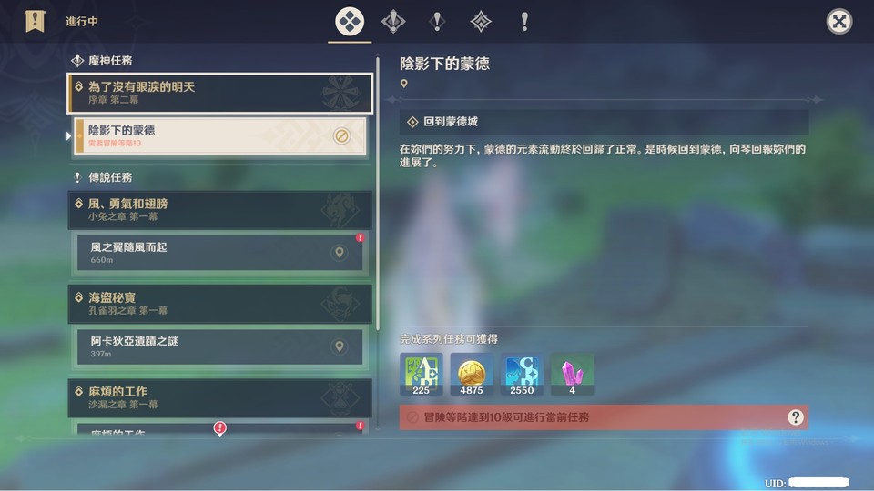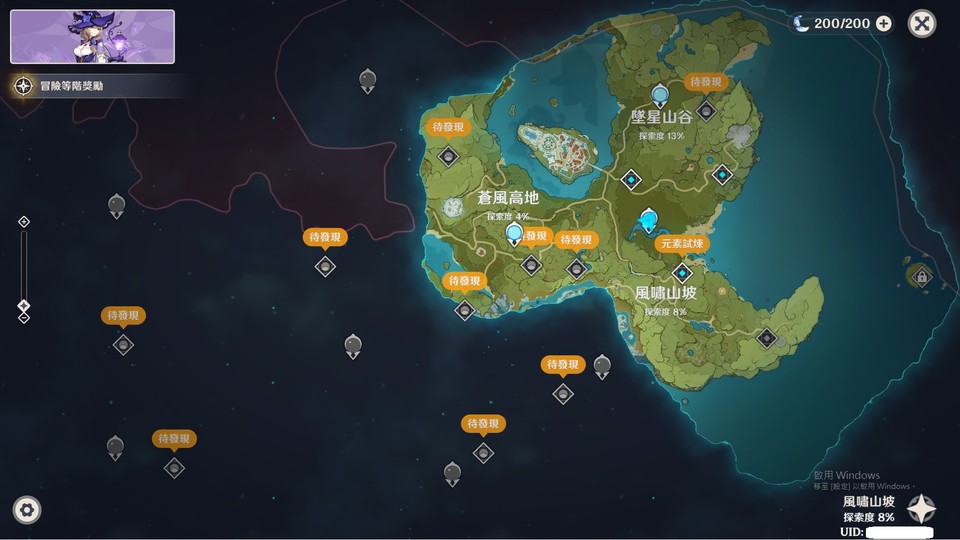 蒙德地圖, 只跟著主線進度( 探 索 極 低 )