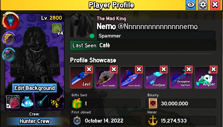 Blox fruit:海賊滿賞 海軍1520萬 等級2800 全種族v4(除兔子皆滿齒輪) 全拳法 永久龍 永久暴龍 永久門 雙精通 spam刀都有不錯的附魔呦!