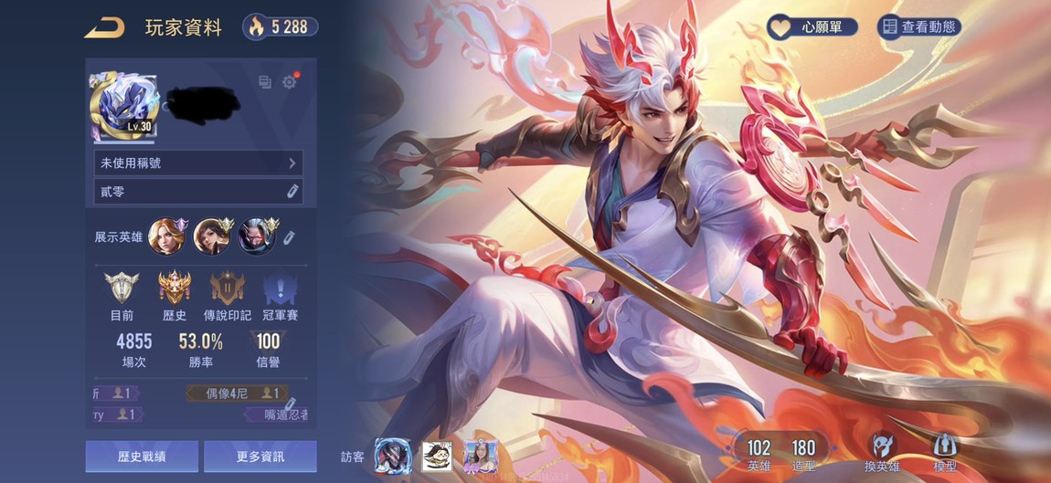 【Garena帳有綁定、鉑金、V5、102英、180造】從新po 因玩很長時間的帳號 信箱登不進去 不介意在出價 可提供切結