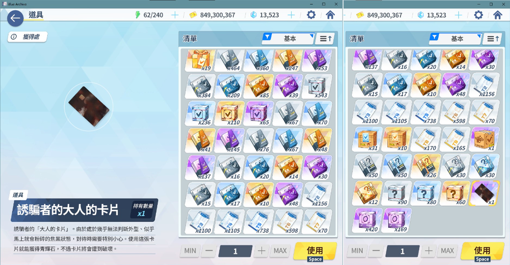 大人卡片未碎、紀念日未設定、絕版禮物*3、第一期通行證稱號家具、全活動家具、活動稱號