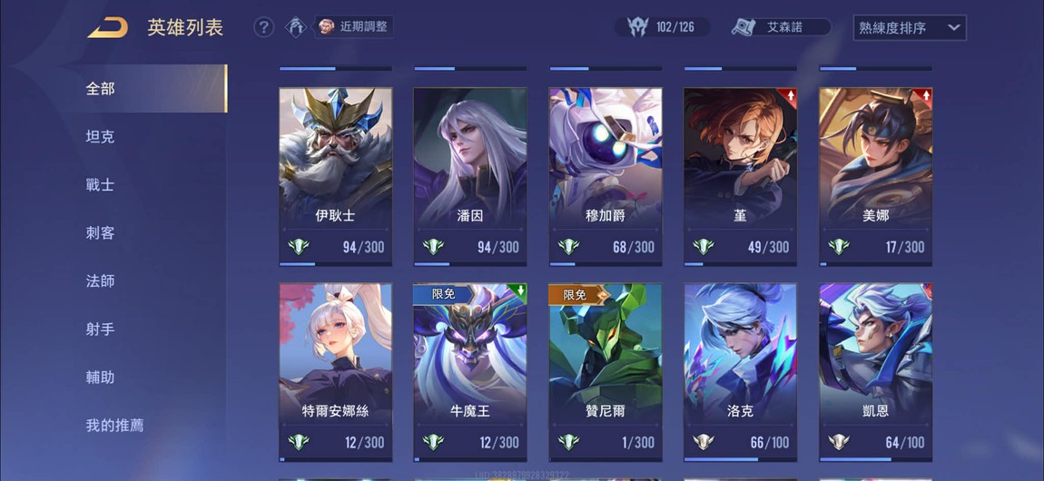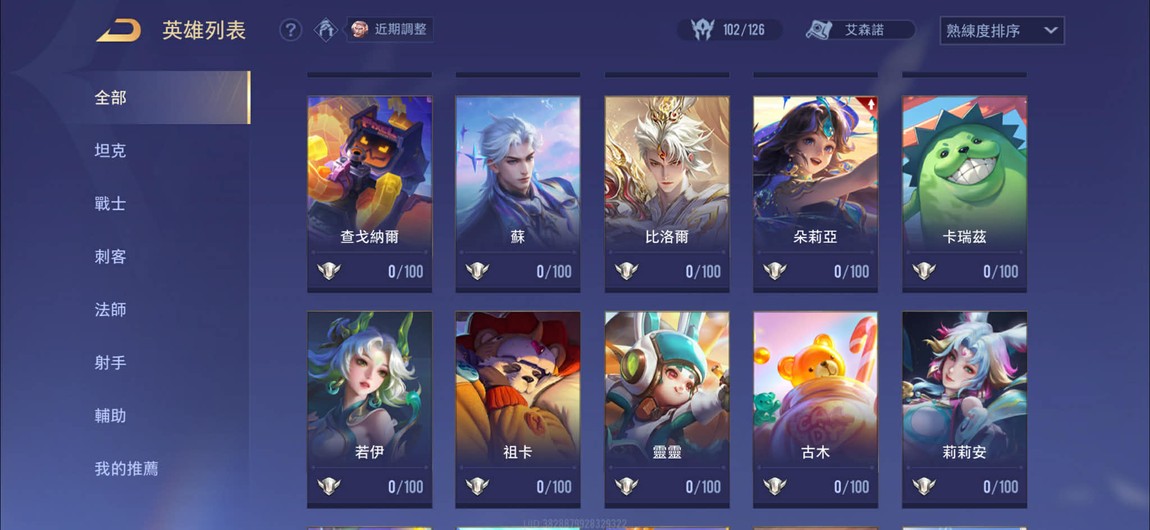 【Garena帳有綁定、鉑金、V8、102英、162造】超級玩家基德史萊姆咒術釘崎甄嬛傳神助千願蜜莉姆紫苑美樂蒂布丁狗浮光奔雷新年金源寶