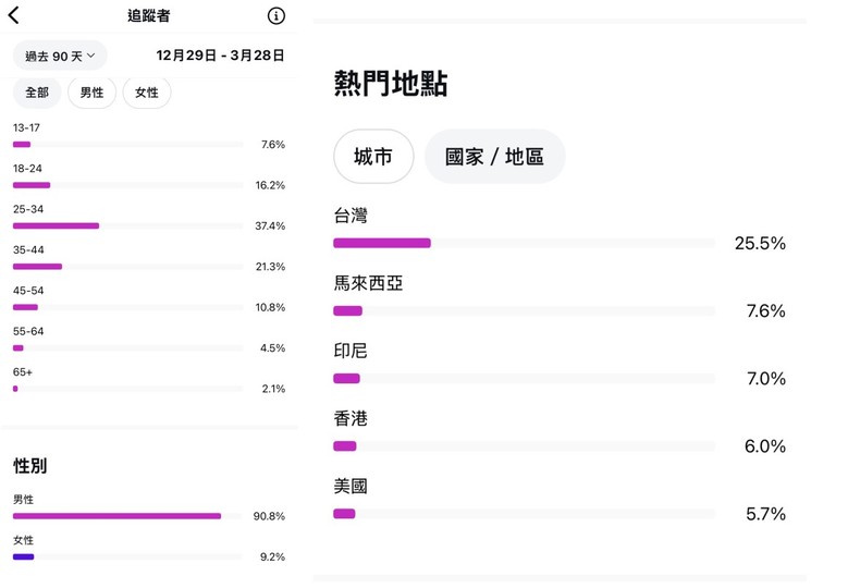 ⑤數據顯示台灣粉比有25%,男女比9:1