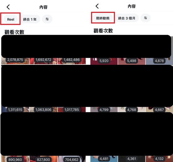 ④限動均真人5000左右觀看,Reels 也有百萬流量