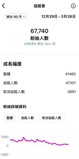 ②粉絲0~現在全都是自然流量(絕無買粉),粉絲下降極低