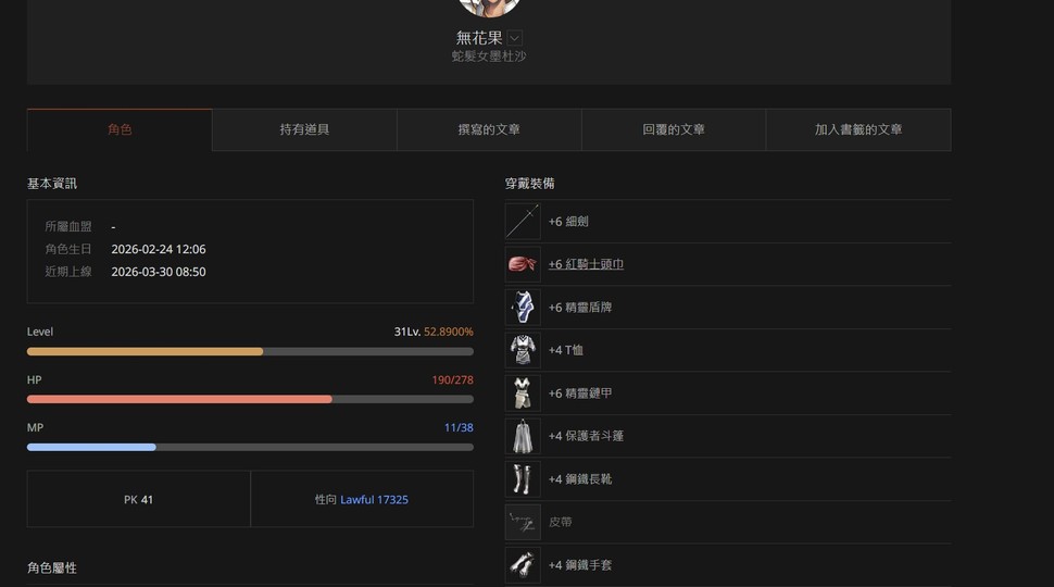 【31等、騎士】力騎.魔力:38(超好體質) 全身安定裝.+6細劍/+0紅劍