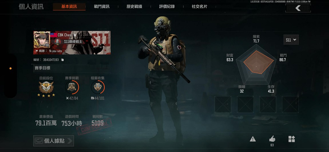 79M繡春刀 開山刀 一些金槍皮紫槍皮 還有一些裝備皮膚 有兩張機密文件和四個理想國