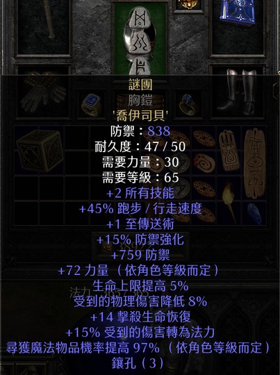 腰帶:基德的賭注(20高施 15跑 15打擊恢復 -6%敵魔抗 11全抗 +65%打錢)