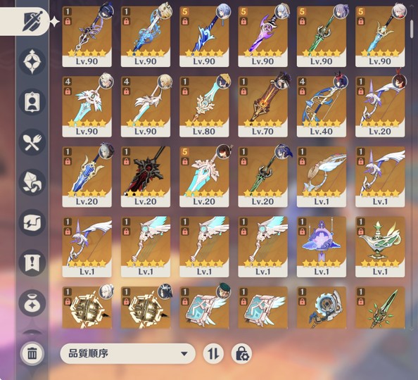 小保底已40抽、武器池0抽。