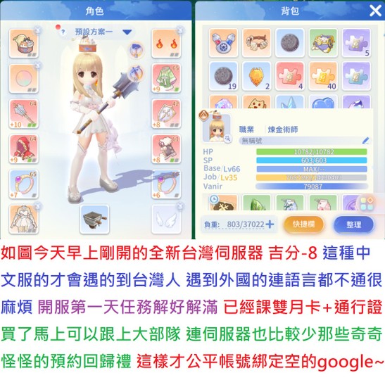 【66等】僅此一組★歡迎出價◆全新伺服器吉分-8★66等女煉金★雙月卡+通行證都以開