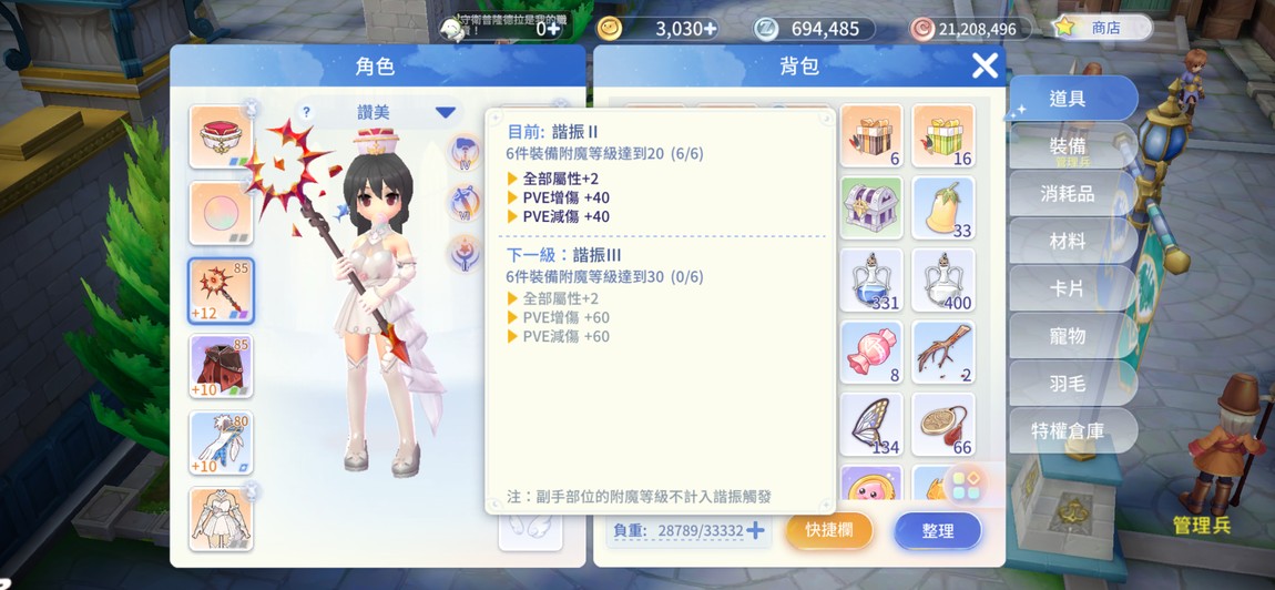 86神官 +12武 魔攻2900 自身狀態 附魔6件20覺醒 羽毛如圖