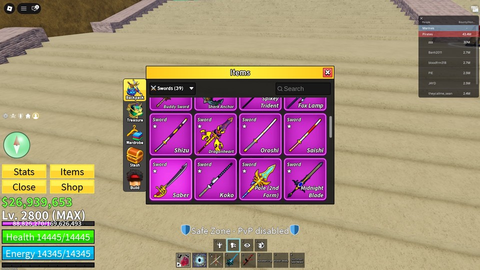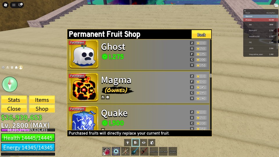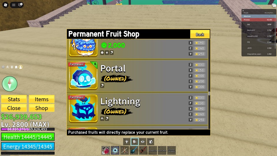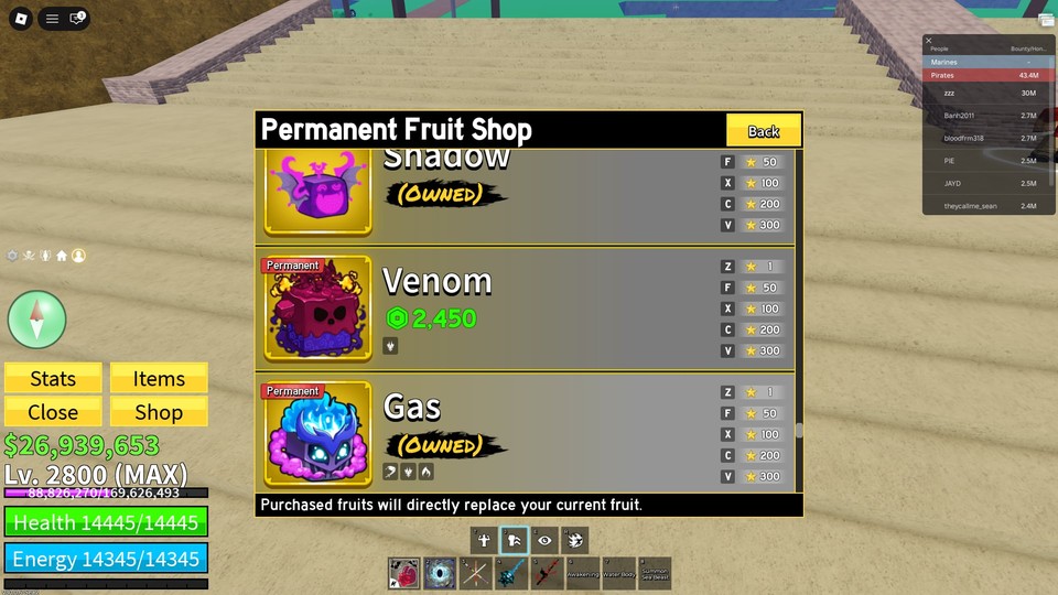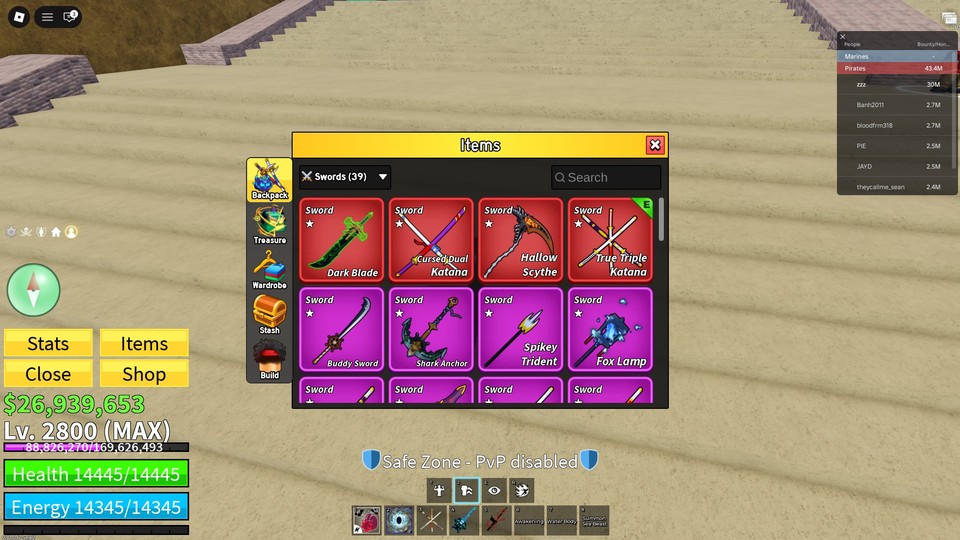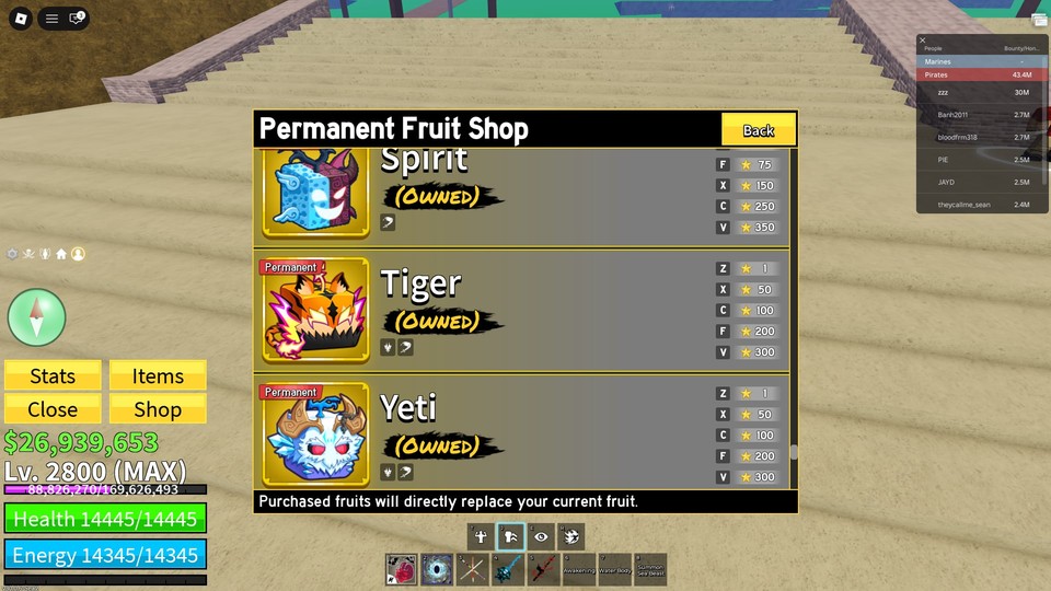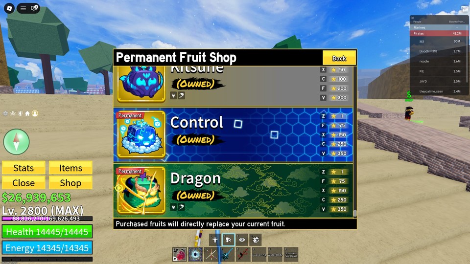 Blox Fruit 全通行證 全種族可換齒 絕版道具多 黑刀V3 九尾 龍 控制 雪怪 老虎 魂 瓦斯 暗影 響雷 門 岩漿 暗全永久 刀 槍幾乎全部強化加附魔 雙滿賞