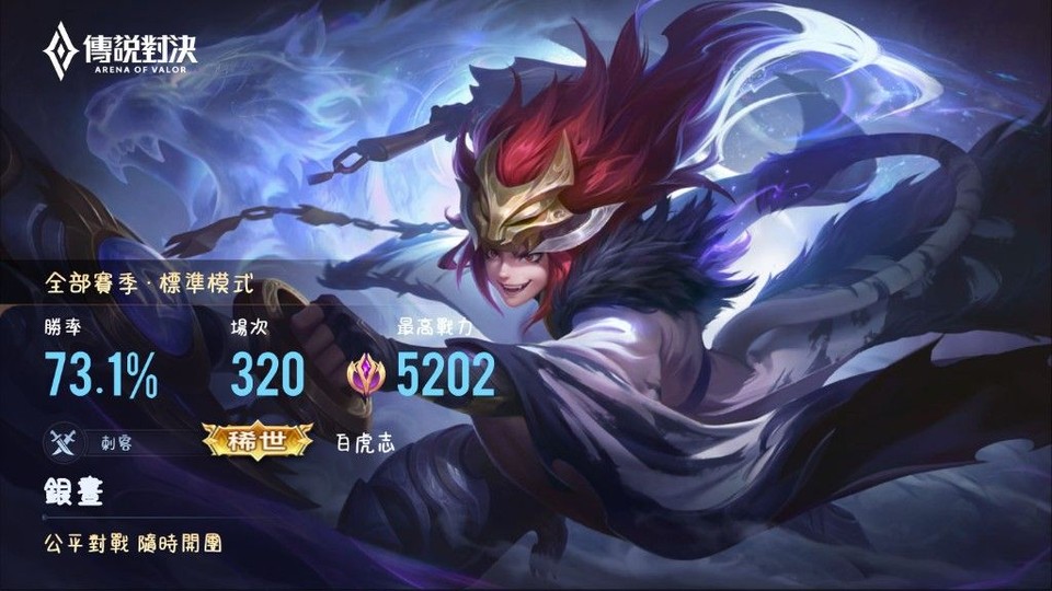 【Garena帳無綁無連、鑽石、無VIP、45英、47造】可議 稀有白虎簡 歷史天際 紫標