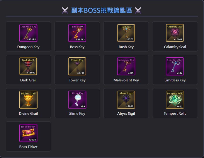 ✨ 副本挑戰鑰匙區