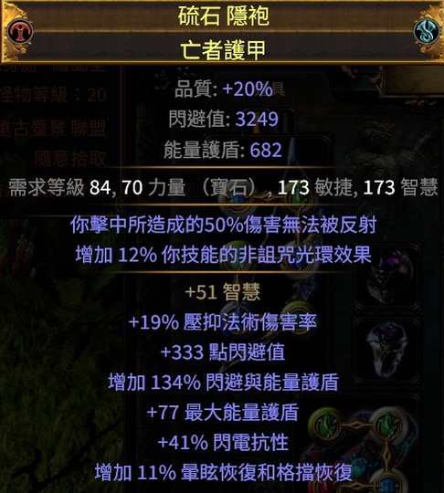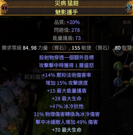 神龕守林人冰緩手+89%神殿效果+閃避ES生存