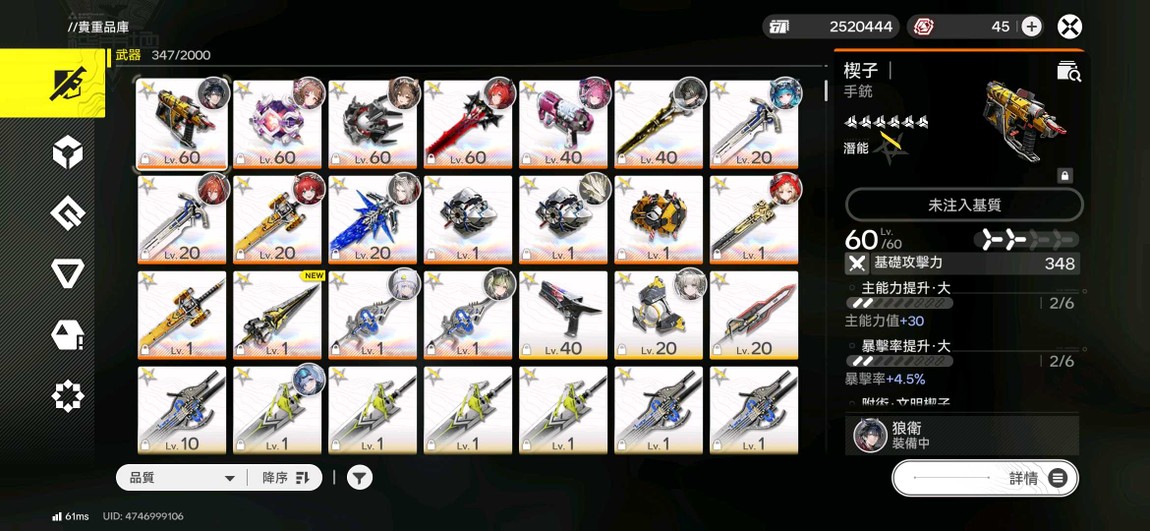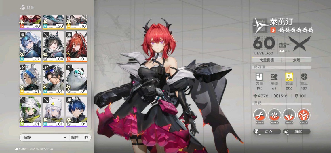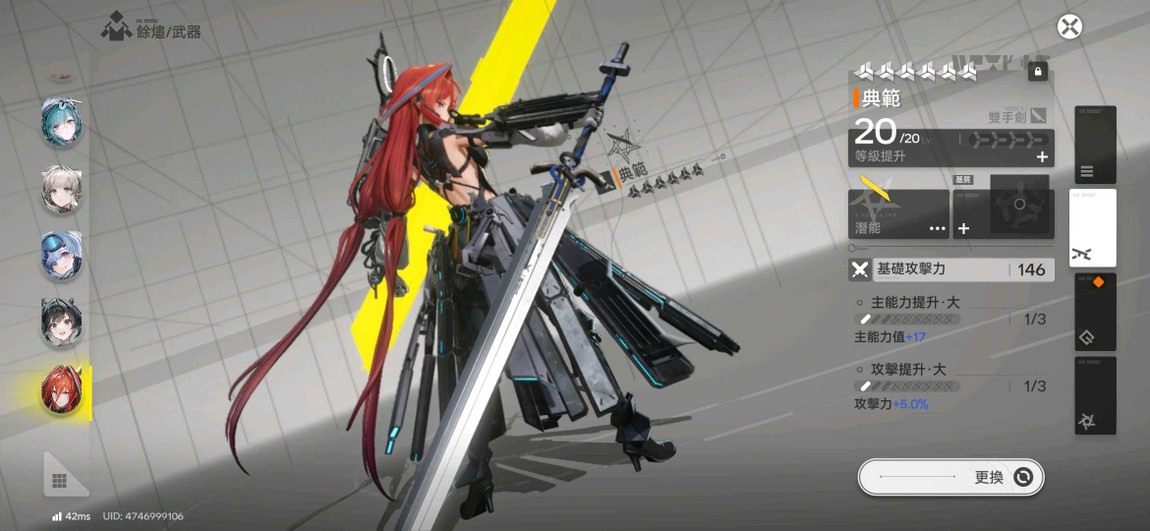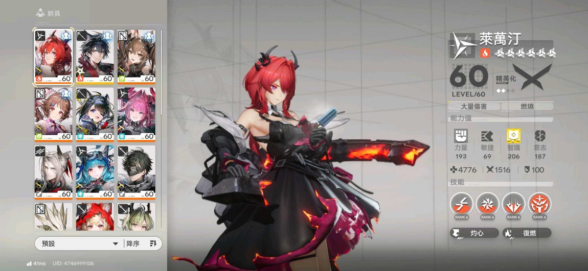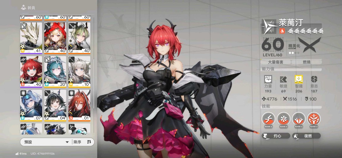 明日方舟終末地,一手帳號,進度、角色及六星武器如圖片。