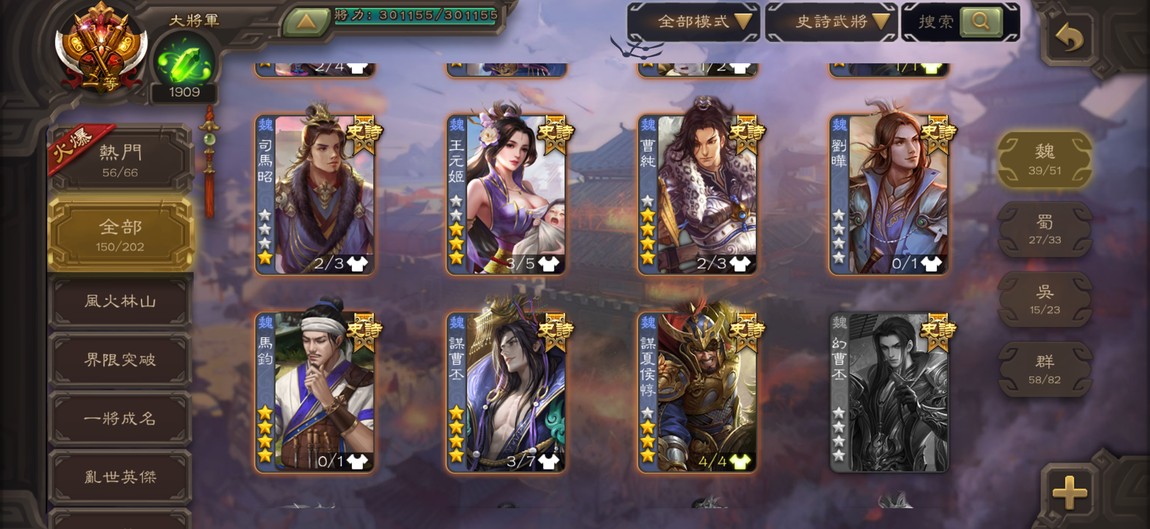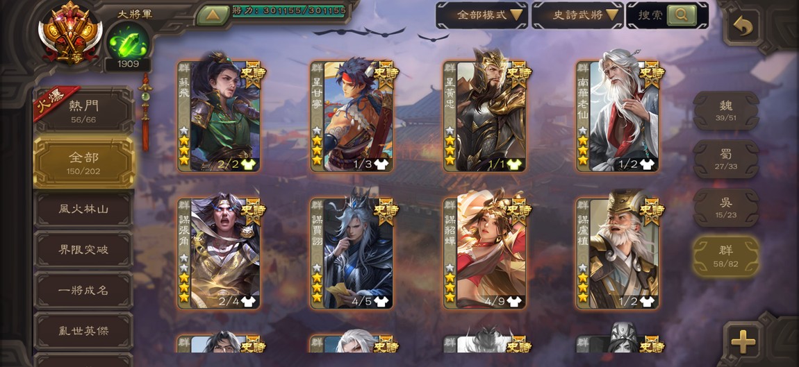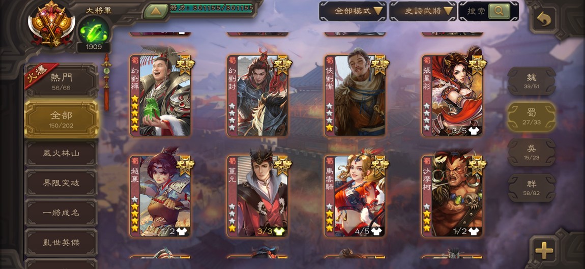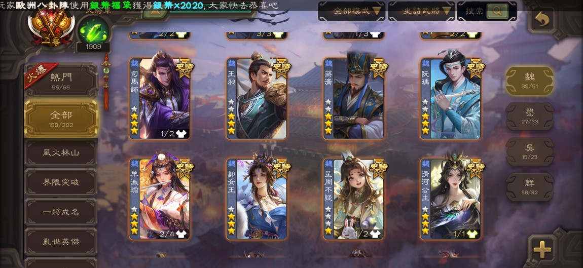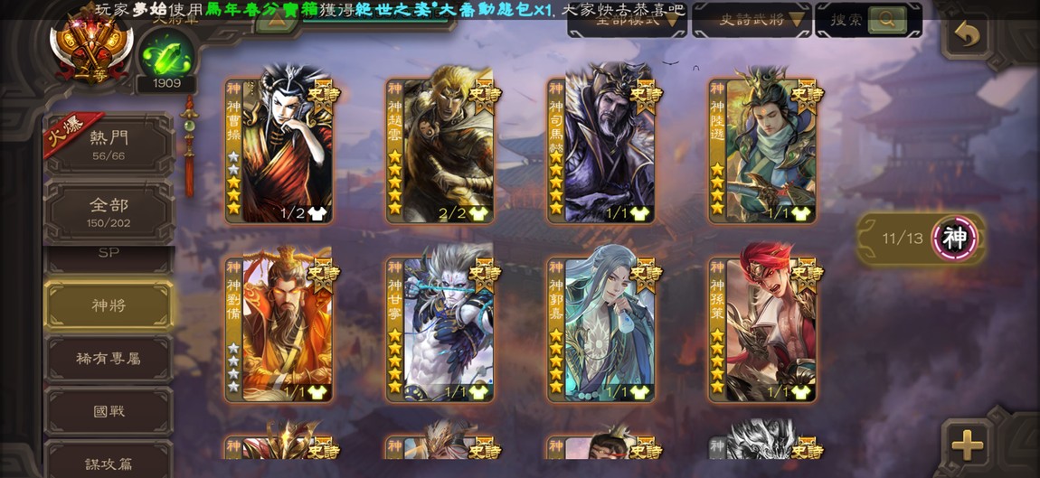 幻諸葛亮,幻曹昂,幻諸葛果,石轁,勢魏延,勢太史慈,勢于吉等等史詩武將