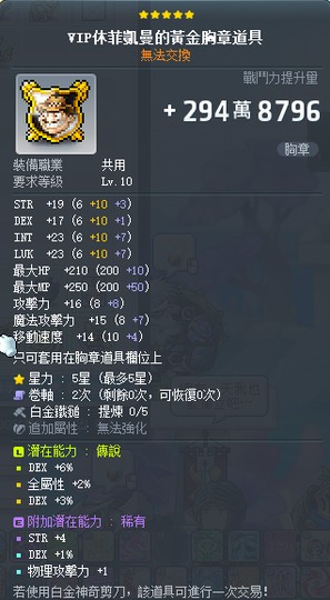【VIP休菲凱曼的黃金胸章道具】11%敏