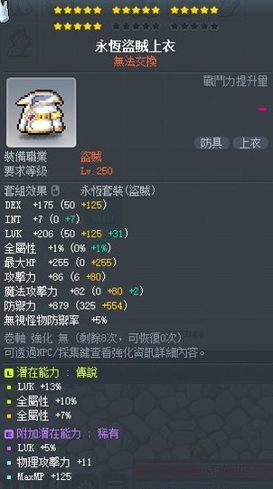 20C永恆盜賊上衣30%幸(含有17%全屬)附加稀有(5%幸+11物攻)