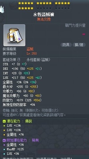 20C永恆盜賊褲30%幸(含有7%全屬)附加稀有(3%全屬+3%幸)