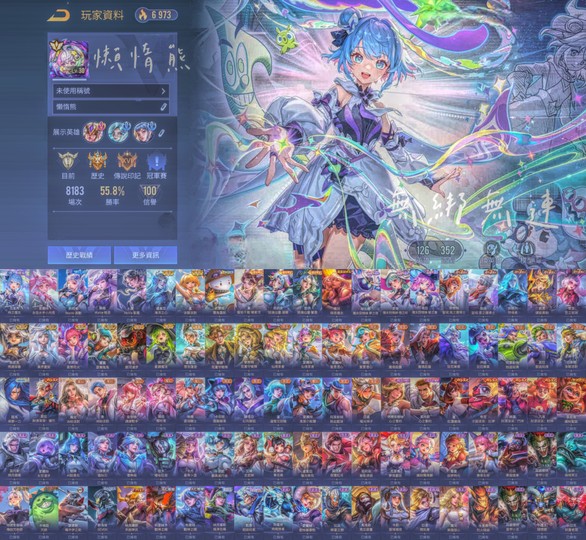 【Garena帳無綁無連、先鋒傳說·光影、V8、126英、352造】市場稀有全無綁🔥時之魔女、小月亮、wave波動、泳裝堇、龍佑、暗夜 全英雄🔥