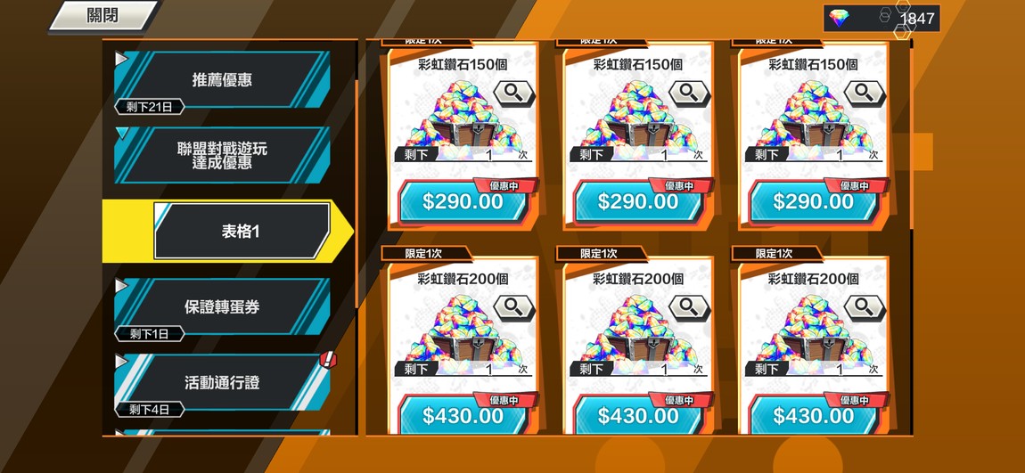 2.保留了帳號限購一次的特惠分頁,如果您打算微課,這個帳號能讓您用最少的錢換到最多的鑽石,絕對比自己重頭抽還划算。