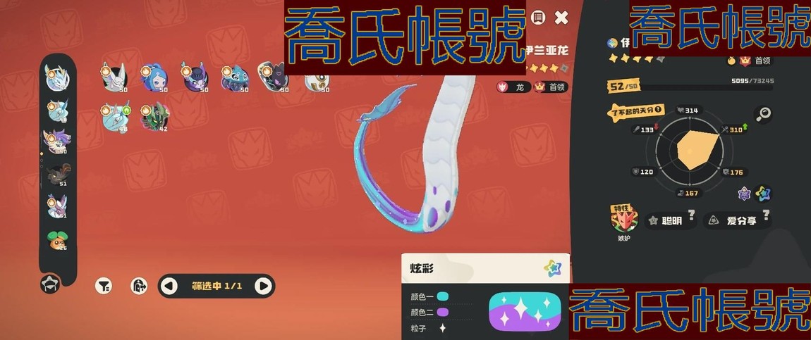 【11等】男女主:女主,炫彩寵物數量:10,國王球:17,許願星:226,炫彩:伊蘭亞龍