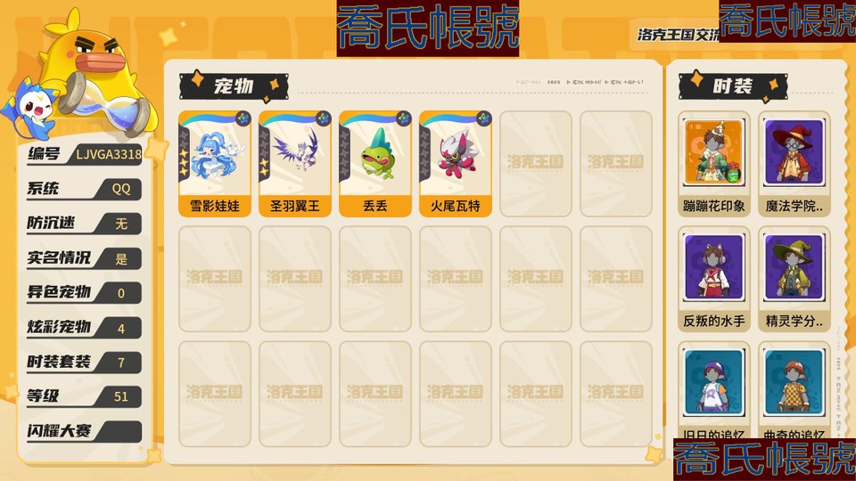 【OBLJVGA331842】男女主:男主,炫彩寵物數量:4,國王球:21,稜鏡球:9,許願星:16,炫彩:雪影娃娃(炫彩),聖羽翼王(炫彩),丟丟(炫彩),火尾瓦特(炫彩),時裝套裝:蹦蹦花印象;詳情看圖【安卓QQ】【不可二次實名】【無防沉迷】【官方截圖】洛克王國成品號,人物等級51級,主線任務全過,地圖錨點全開,超好看聖誕時裝 超好看炫彩雪影娃娃+炫紫翼王 8只**開朗+**天分狼王pvp狼隊神寵 完美雪天隊已組好,直接使用,pvp強隊 pvp隕星隊強寵落隕星兔,**性格天分已配好 圖鑑已開194,熱門有雪影娃娃+惡魔狼果實 有戰令寵極光千獸 國王球21個,稜綵球9個 1144個紫果,952個分光水晶,2瓶首領秘藥 可走平臺,可小刀