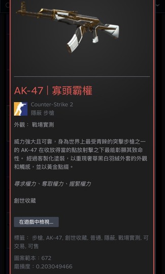 AK-47 | 寡頭霸權 磨損度:0.203049466 可直接交易