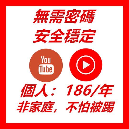 🔥秒發貨🔥 YouTube Premium 香港個人方案 無需密碼 安全穩定