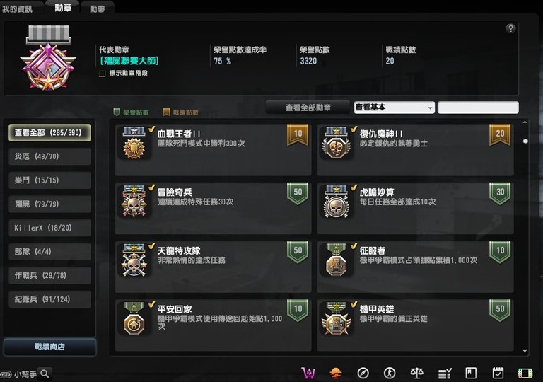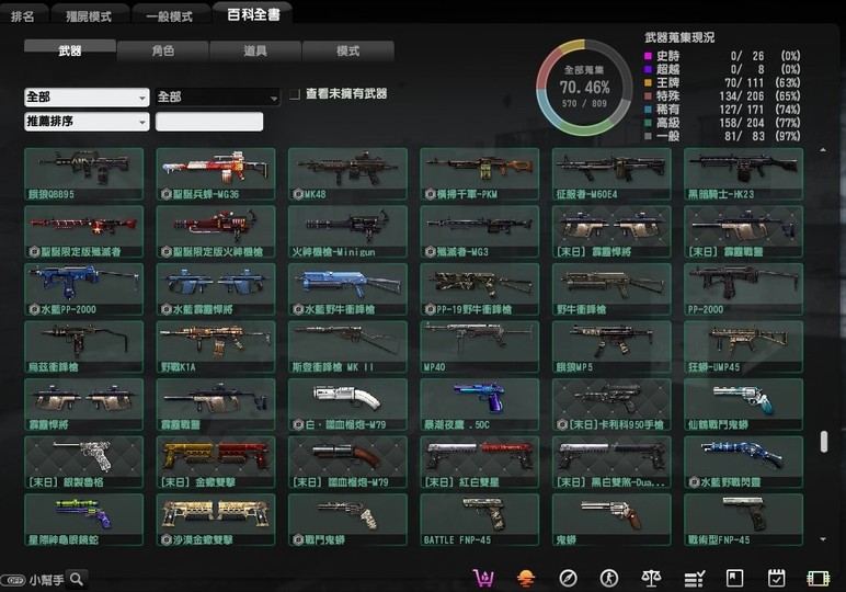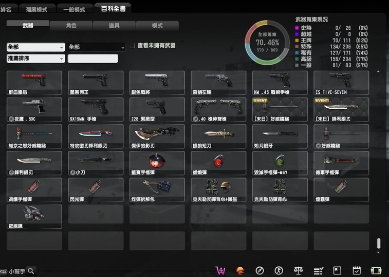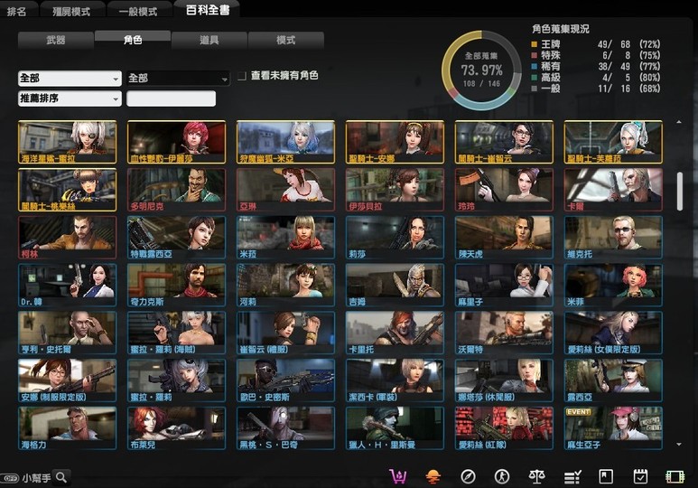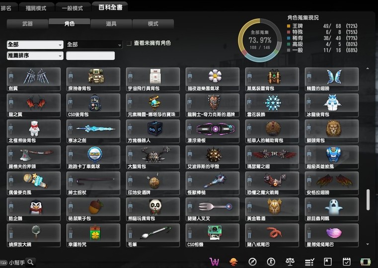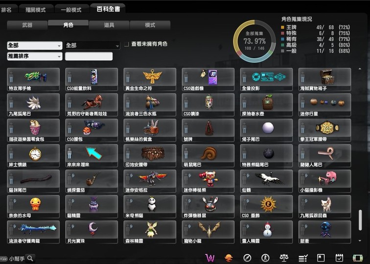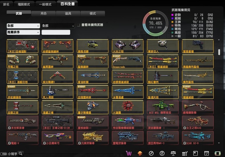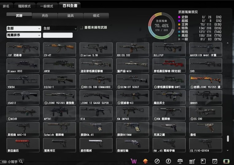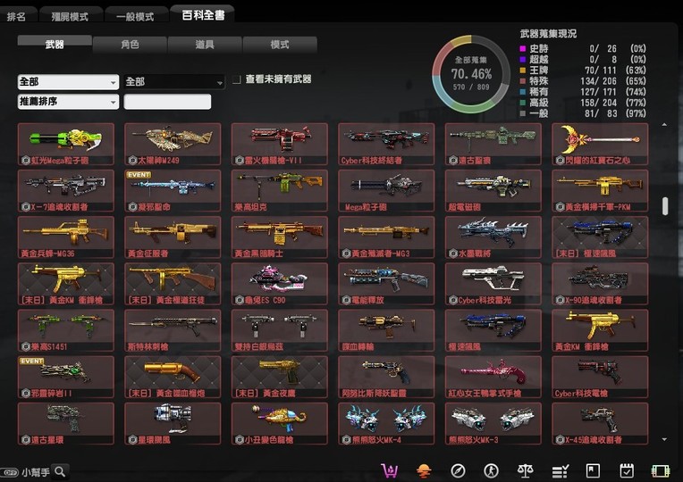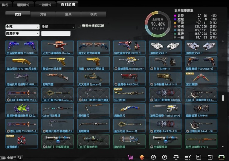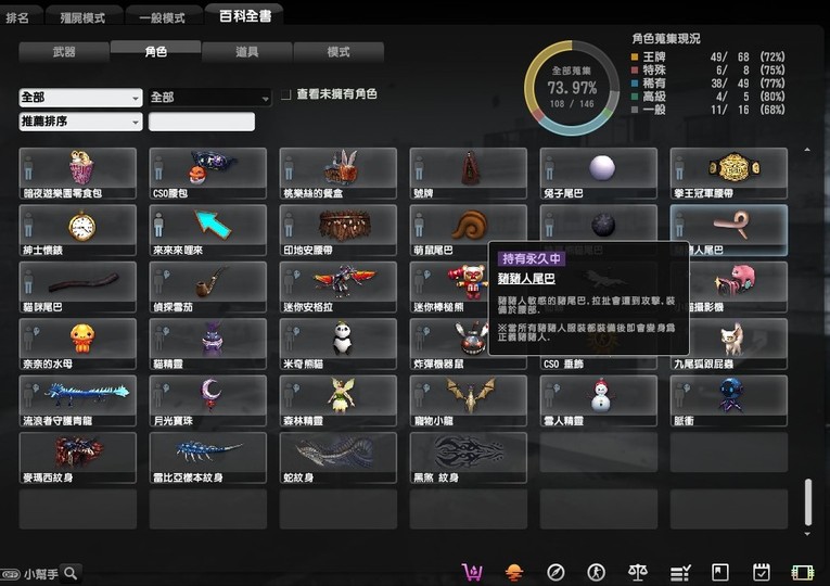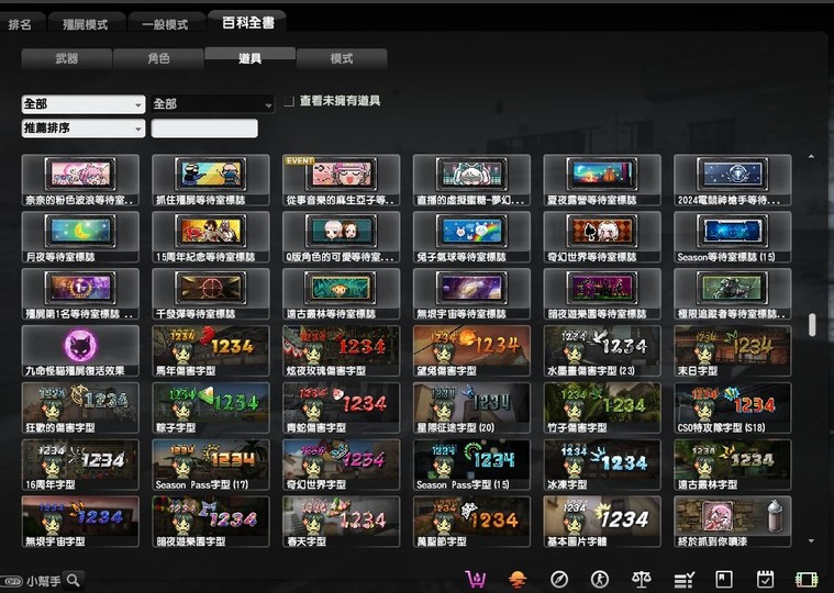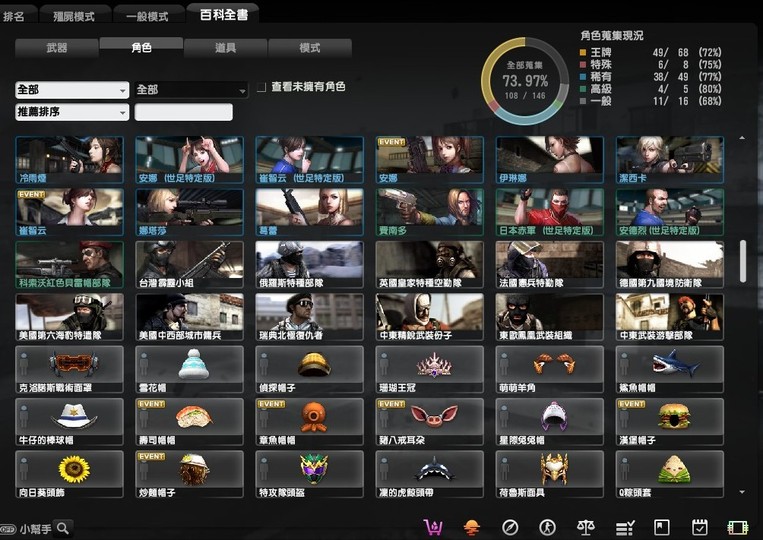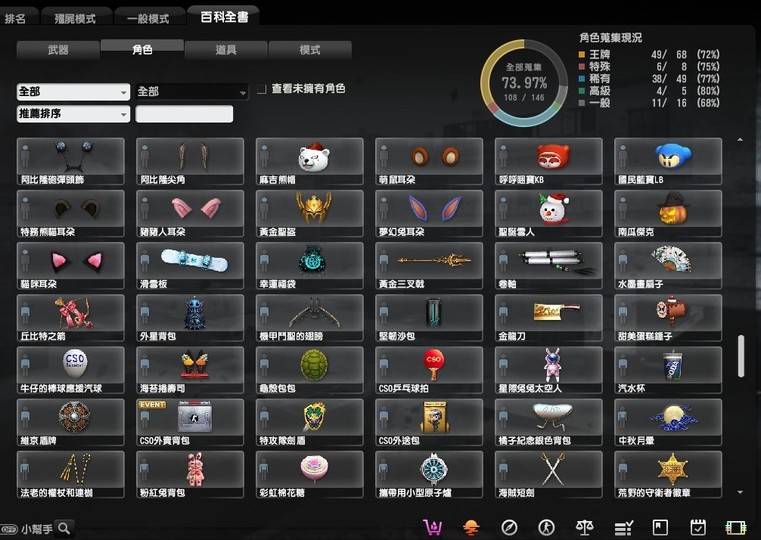 稀有的有魔鬼終結者,鬼斧神工,過一天算一天,武器組裝達人,跟著老大走,可愛就是正義,梅克戰士躲貓貓4個都有, CSO 班長.