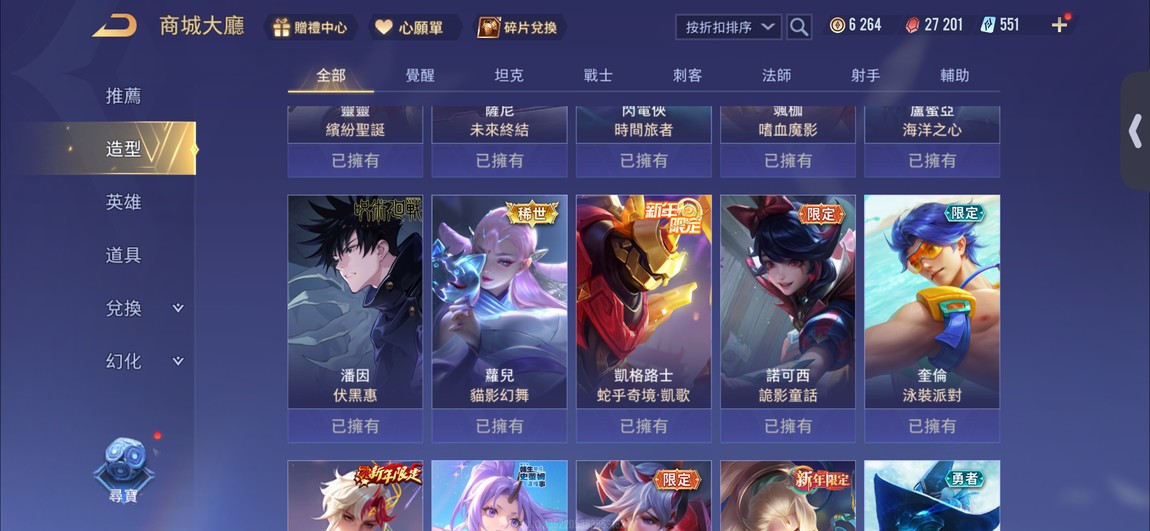 【Garena帳有綁定、星耀、V9、80英、165造】現在星耀1滿⭐️害牙造生 伏黑 玎崎 新年比洛爾 身分電話4/8 內有全部詳細圖