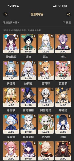 【女、60等、30金角、32金武】角色+武器共132金 / 茲白、少女、溫迪、絲柯克滿命 / 多關鍵命座、專武