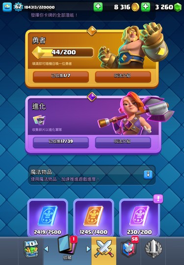 進化卡有很多都收集了一半