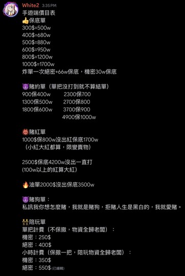 小時計費(保撤一把,陪玩物資全歸老闆):